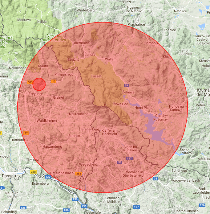 Da rund um den Dreisessel viele Hubschrauber und Löschflugzeuge unterwegs sind gibt es eine Notam mit absolutem Flugverbot für uns im eingezeichneten Gebiet!